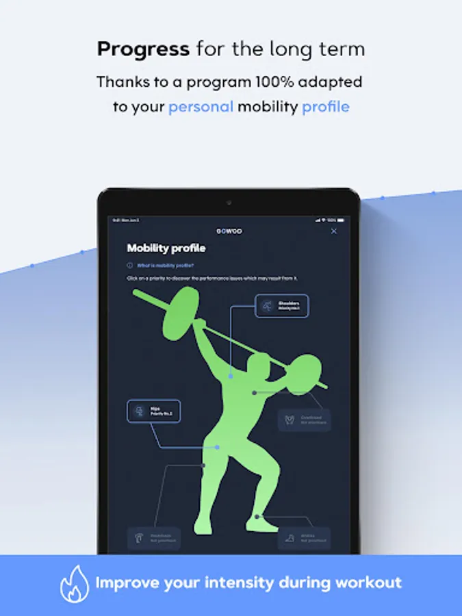 GOWOD Premium is the only mobility program totally adapted to YOU! GOWOD Premium offers tailor-made mobilization protocols, taking into account all your needs and training constraints.