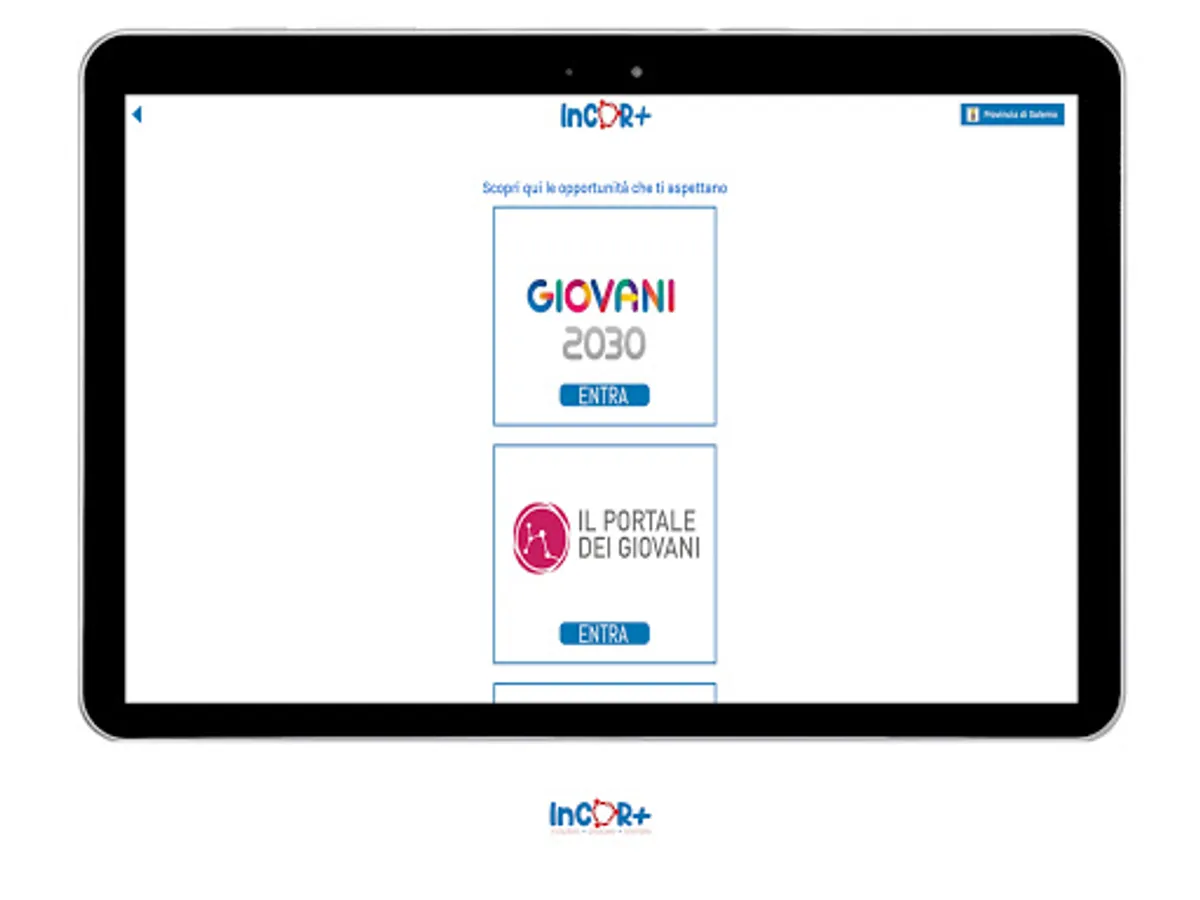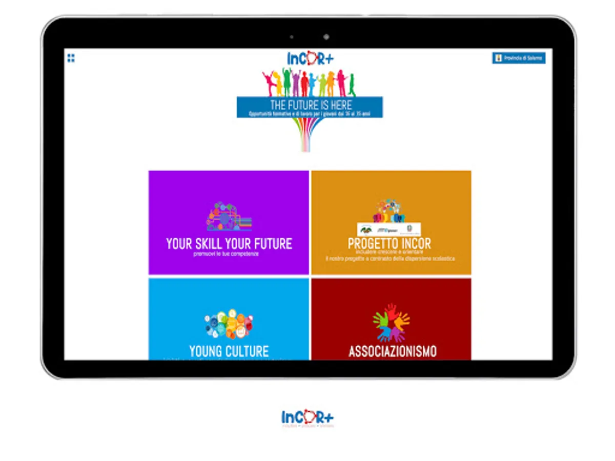 InCOR + was born from a project of the Province of Salerno, funded as part of the provincEgiovani Action, by the Union of Italian Provinces and by the Department of Youth Policies of the Presidency of the Council of Ministers.