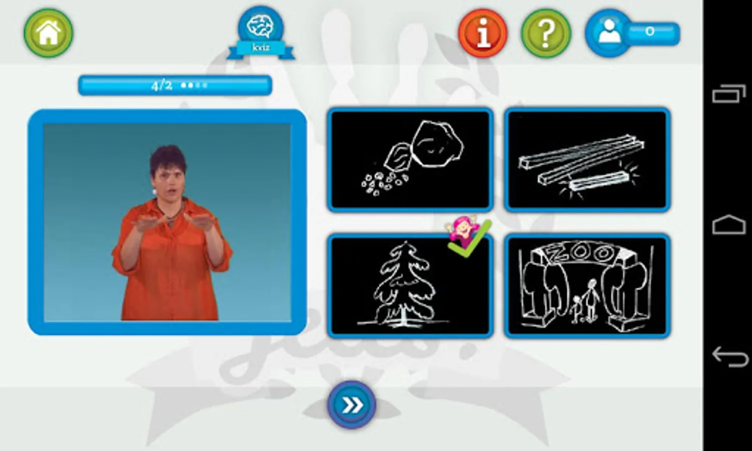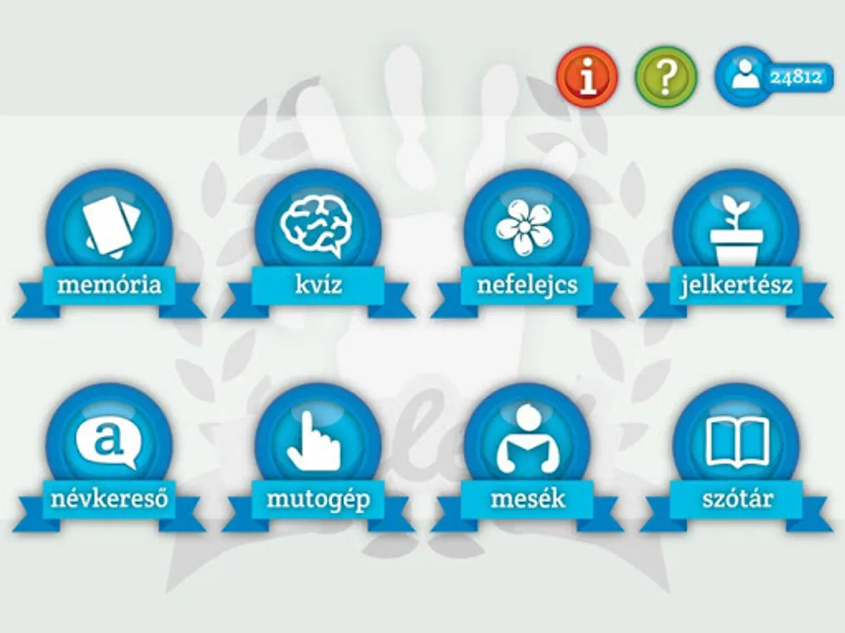 A quiz to four possible answers to the meaning of all symbols. The Legend Garden sign language version of the game known gallows where a small tree leaves must be protected from loss. Forget Memory and the addition of the vocabulary of visual and verbal memory. The application is capable of a sign language dictionary in which to browse and search for a specific signal can be equally comfortable. The Mutogéppel Name Search, and get acquainted with the use of the ABC fonomimikai while Taps and classic tales and stories and everyday stories illustrate the use of sign language to communicate with them. The tales in addition to encouraging jelelésre small tasks are completed to not only expand your passive vocabulary, but also próbálhassátok out what your hands to shape their thoughts. The stories and reading comprehension questions relate to maintaining a continual awareness, improving communication skills, memory.