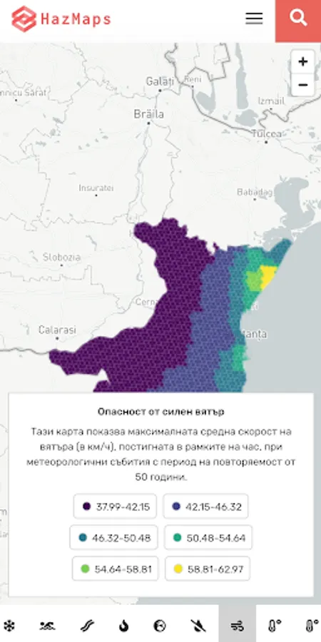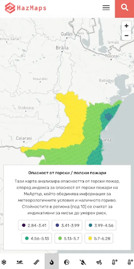 The joint hazard map of the two cross-border regions - Ovidiu, Romania and Shabla, Bulgaria, is a modern and innovative IT product with geo-referenced data. It is based on an extensive analysis of existing data (official registries, satellite, sensor, etc) on the hazards of fire, floods, earthquakes and other natural disasters. You can access information on both the hazard, and a historical overview of past events.