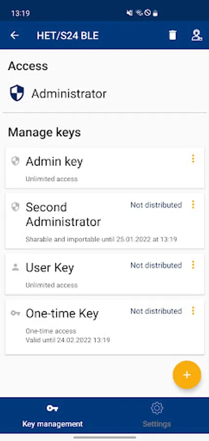 - Permissions (keys) are created on the administrator’s app, can be issued either temporarily or permanently and can also be deleted.
