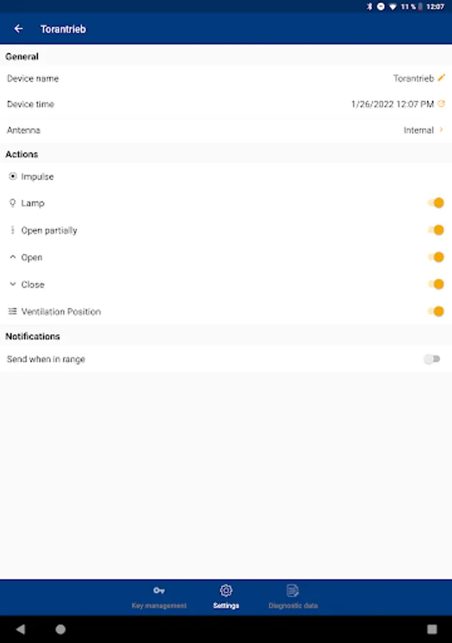 You can send permissions (keys) to family or friends, for example, via text message, e-mail or messenger. You don’t even have to be home to send a key, since keys are transmitted via a certified server in Germany. Manage your keys right in the app.