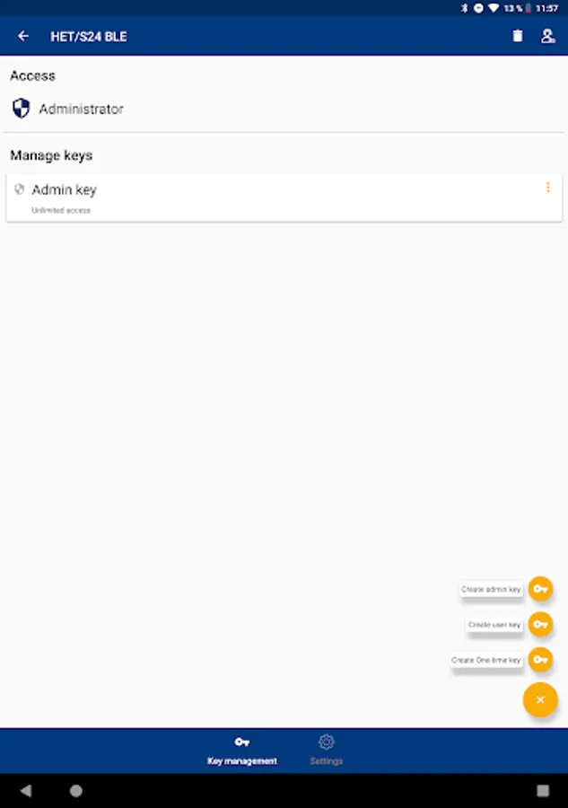 - Permissions (keys) are created on the administrator’s app, can be issued either temporarily or permanently and can also be deleted.