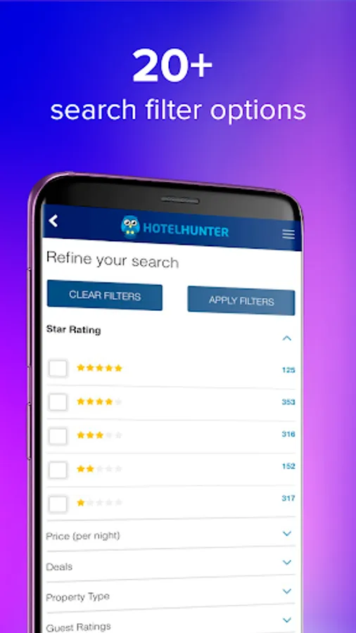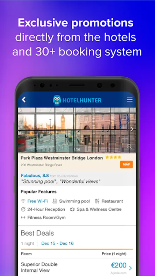 Hotelhunter - Exclusive discounts directly from the hotels and world booking systems. We will help you find all special offers and save up to 80% of your money. Convenient search and comparison of the hotel prices all over the world. Best offers from leading hotel networks.