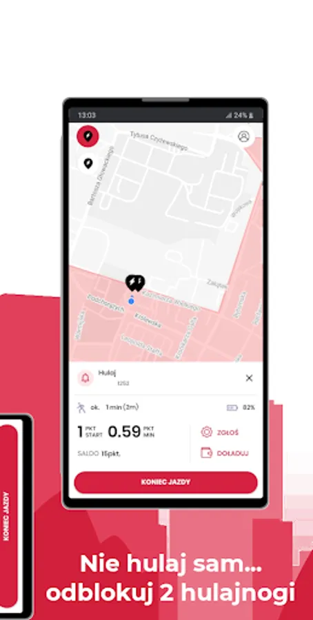 Download the application, top up your account, rent HULAJnogę and enjoy free movement.