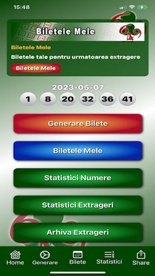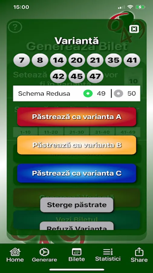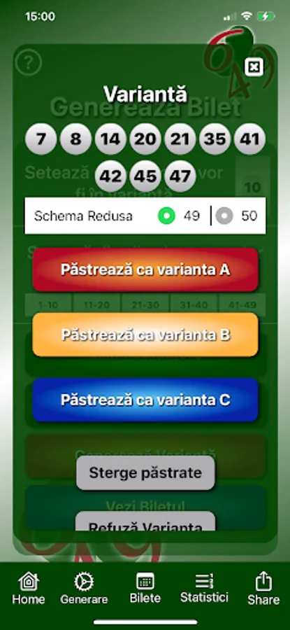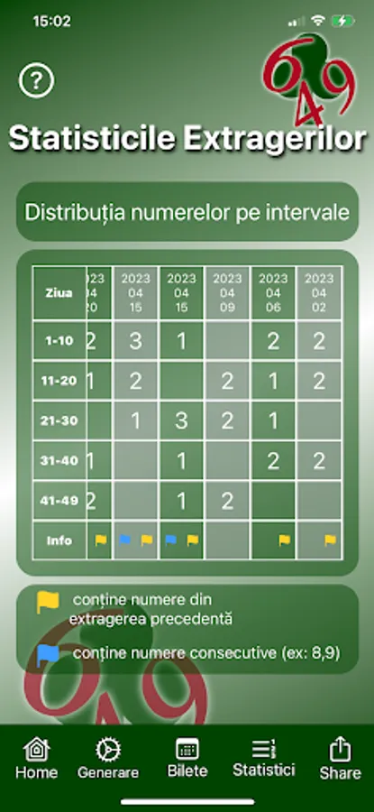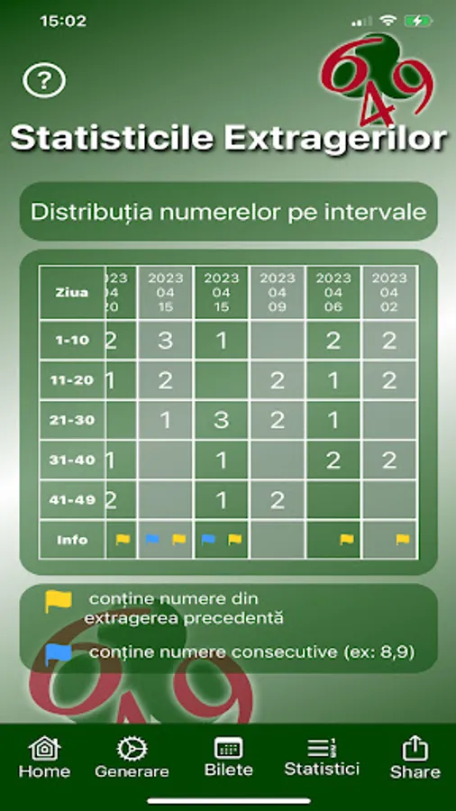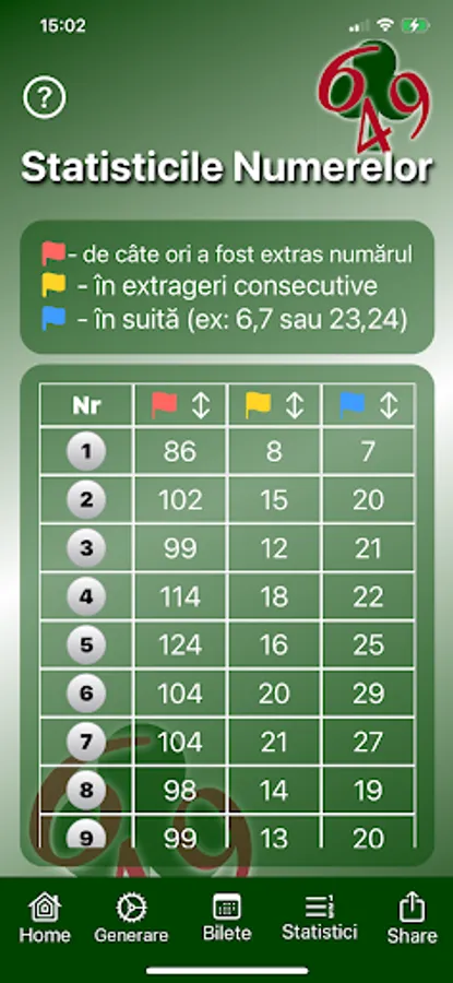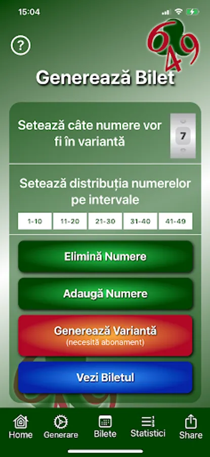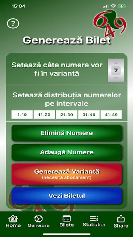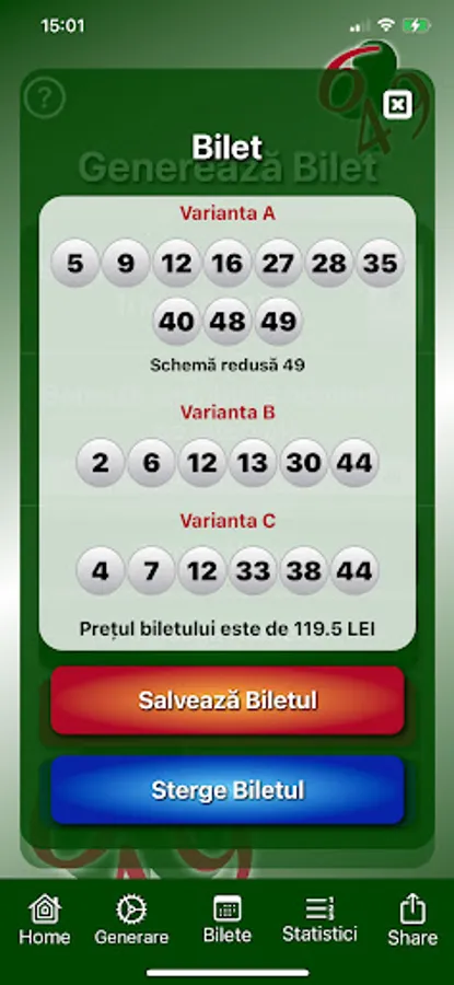 Lottery Ticket Generator 6 of 49. Generate variants and see the statistics and price of the variant with or without the reduced scheme. Save your tickets for the next draw. See the result of your ticket immediately after the draw. You have statistics for each number (frequency, repetition, string). Get statistics and information about each draw (numbers in suite, missing ranges, repeated numbers)