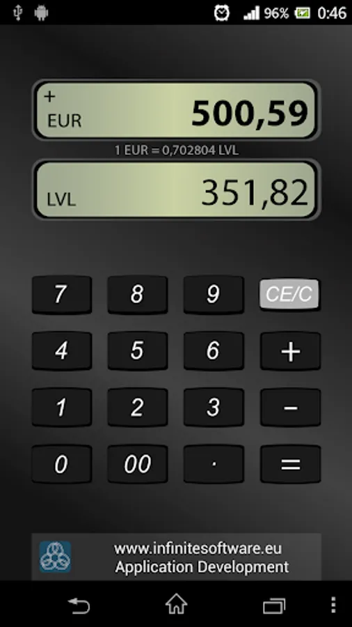 Simple and easy-to-use calculator, which instantly converts Lats into Euros and vice versa, and also adds and subtracts. The calculator uses the exchange rate set by the Council of the European Union 1 EUR = 0,702804 LVL.