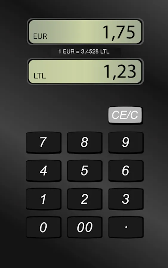 Simple and easy-to-use calculator, which instantly converts Lits into Euros and vice versa, and also adds and subtracts. The calculator uses the exchange rate set by the Council of the European Union 1 EUR = 3.4528 LTL.