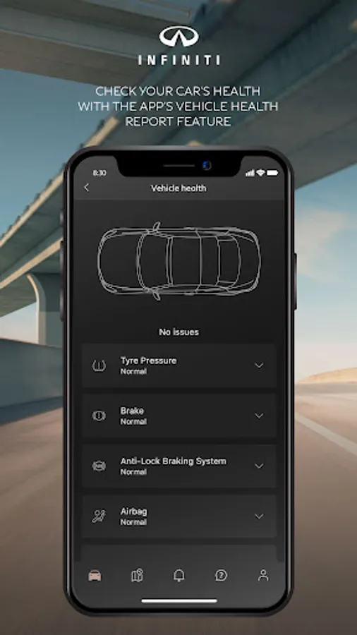 • Get quick access to INFINITI Customer Support;