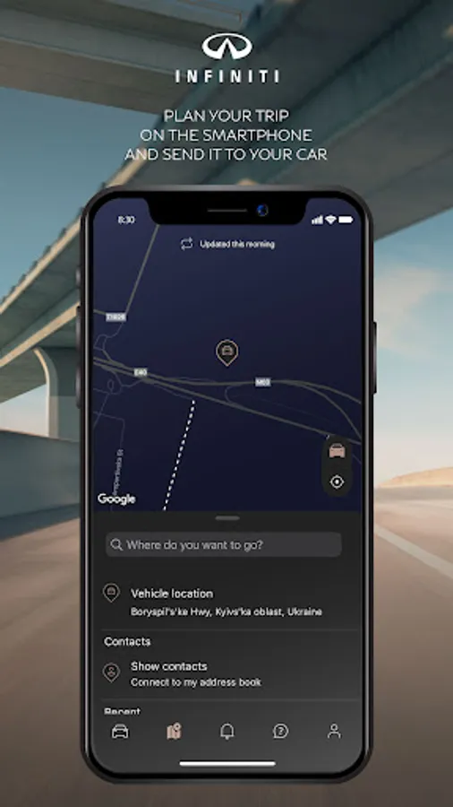 Thanks to the modern and intuitive interface of the "MyINFINITI" application, you can easily use any of the many functions* of remote control over the INFINITI car.