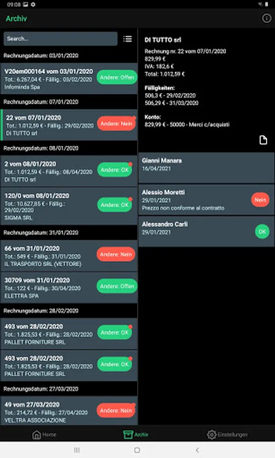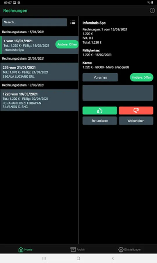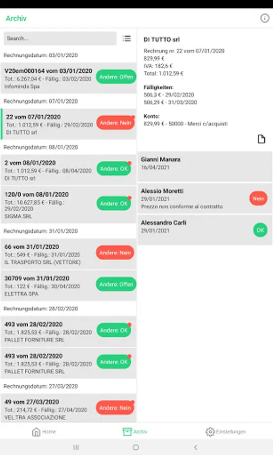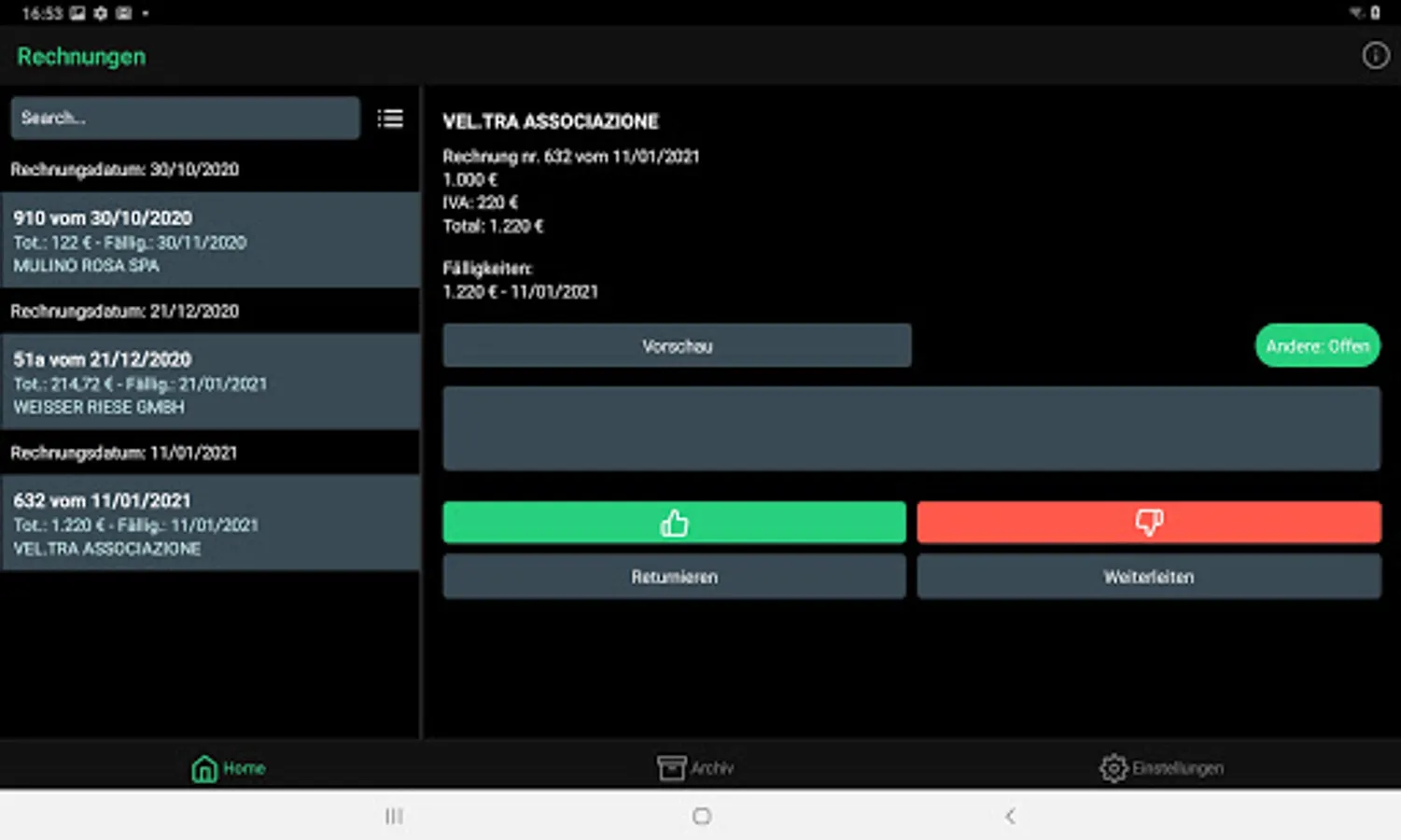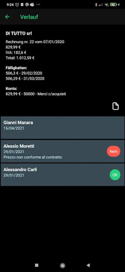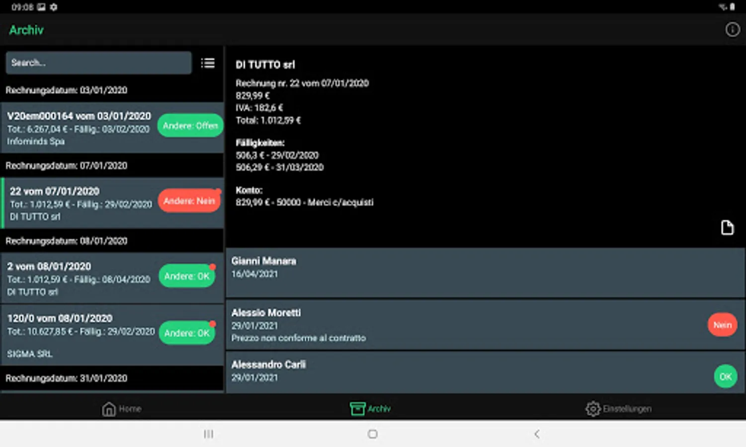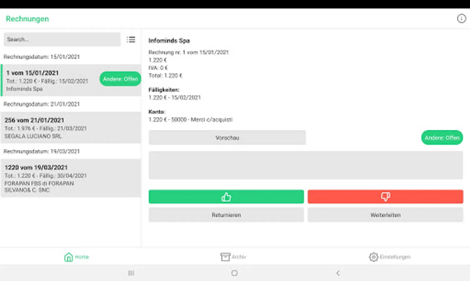 DocOk allows to interact with income bills. Stakeholders can accept, deny or redirect income bills.
