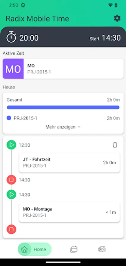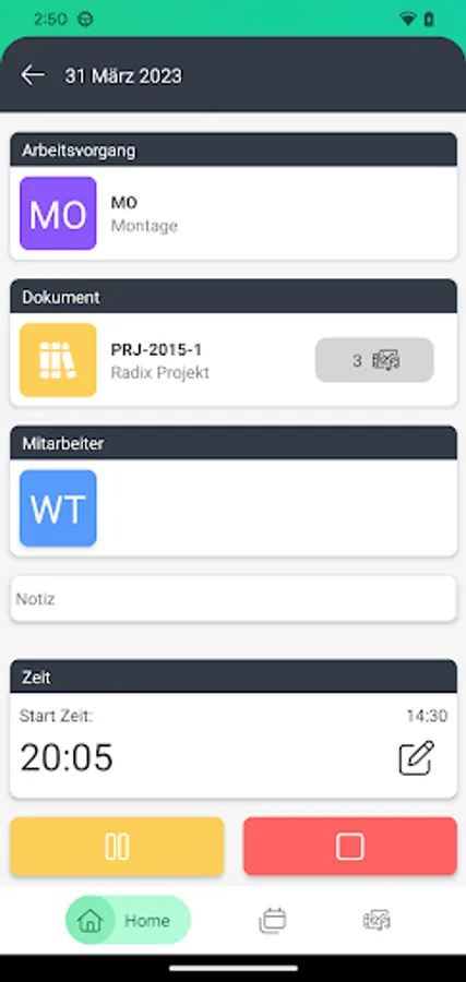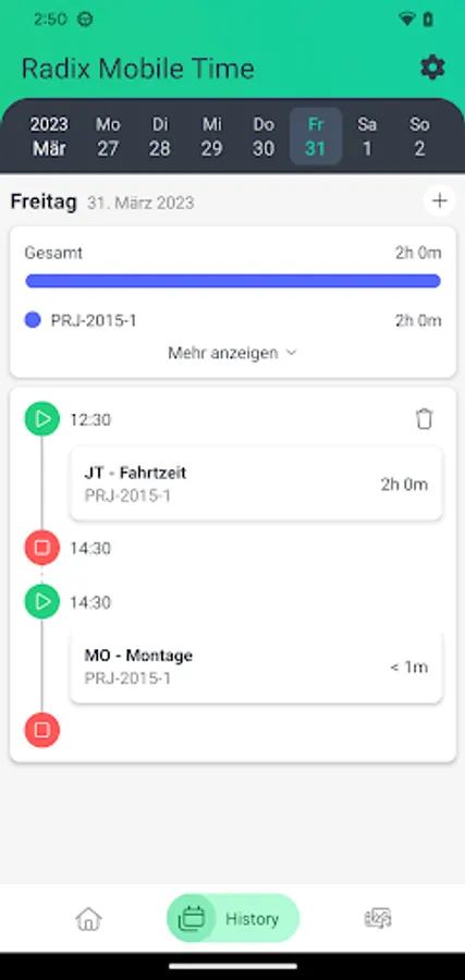 Radix Mobile Time makes it easy to manage times for projects, jobs and productions. It is possible to enter a time with automatic start/stop mode or with manual entry of the total time at the end of the day. It is also possible to view the documents in the radix info box for the various documents. In the menu with the times of the previous days there is a summary of the daily times divided by work activities.