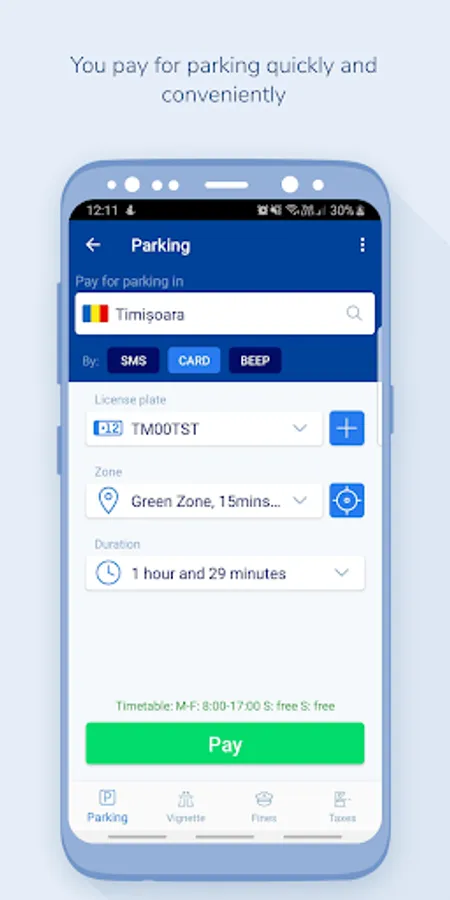 You get notified 5 minutes before parking expires, so you can extend it from anywhere. The parking payment is available in over 60 cities in Romania (Alba Iulia, Alexandria, Arad, Bacau, Baia Mare, Bistrita, Botosani, Brasov, Buzau, Baile Felix/1 Mai, Baile Herculane, Cluj Napoca, Constanta, Corabia, Craiova, Campulung Moldovenesc, Campulung Muscel, Dej, Deva, Dorohoi, Drobeta Turnu Severin, Focsani, Falticeni, Galati, Huedin, Iasi, Jibou, Ludus, Mamaia, Mangalia, Medias, Odorheiu Secuiesc, Oradea, Piatra Neamt, Pitesti, Ploiesti, Reghin, Radauti, Roman, Ramnicu Sarat, Ramnicu Valcea, Satu Mare, Sfantu Gheorghe, Sibiu, Sighetu Marmatiei, Sighisoara, Slanic Moldova, Sovata, Statiuni litoral, Suceava, Tecuci, Timisoara, Turda, Targu Jiu, Targu Neamt, Targu Secuiesc, Tirgu Mures, Vatra Dornei, Zalau).