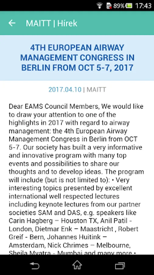 The Hungarian Society of Anaesthesiology and Intensive Care (MAIT) Official Mobile Application for "MAIT" App.