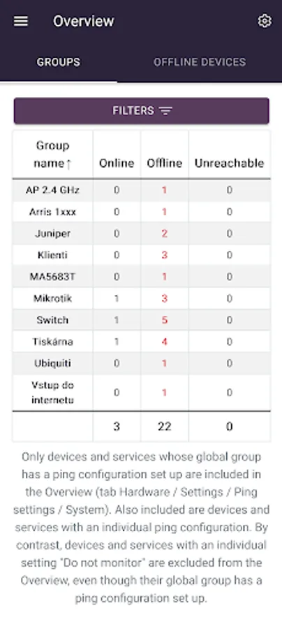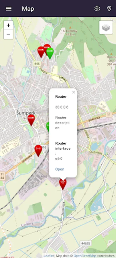 * Clear display of all (online / offline) equipment in the network in a map