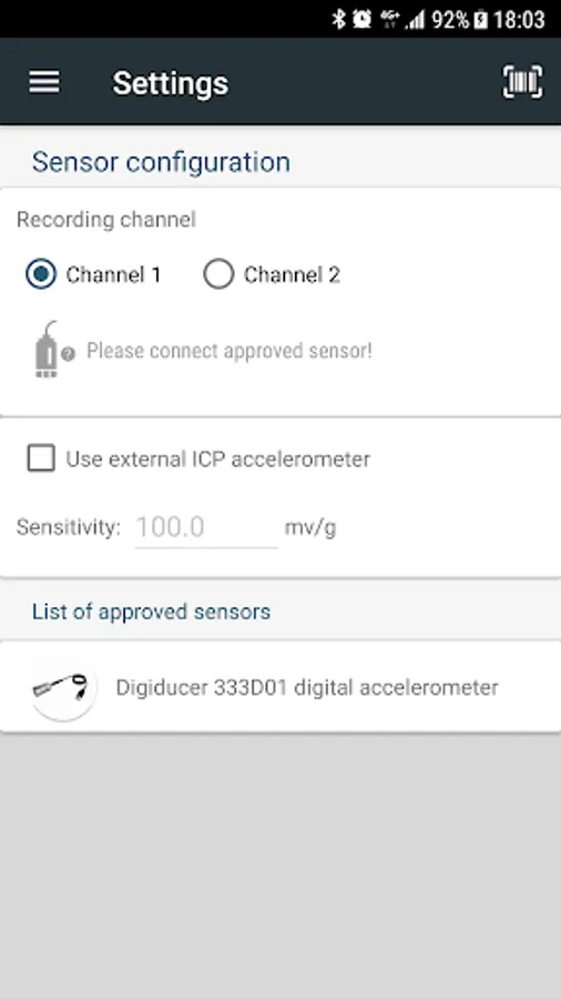 • External hardware - Digiducer sensors (333D01, 333D02, 333D03, 333D04, 333D05 USB Digital Accelerometers);