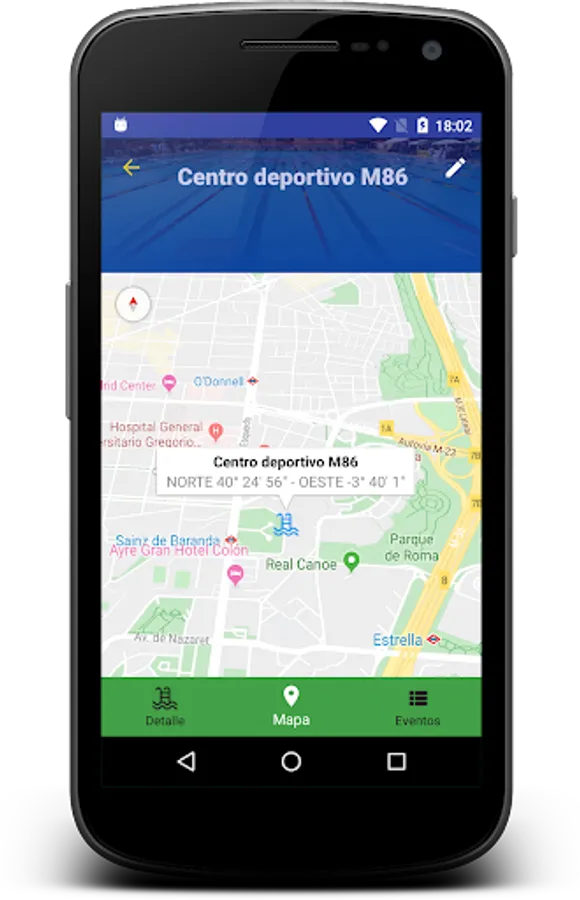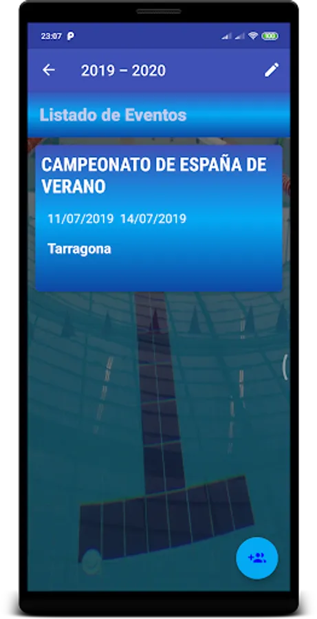 * Enter and view a list of pools and open water events and geolocalize them in a Map.