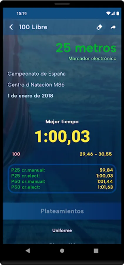 Swim Manager Swimmer Edition is available in English and Spanish, is totally secure and hardly consumes mobile resources.