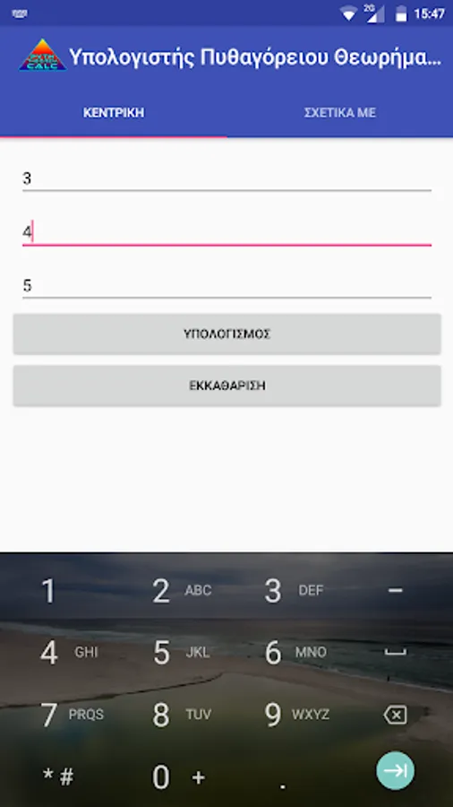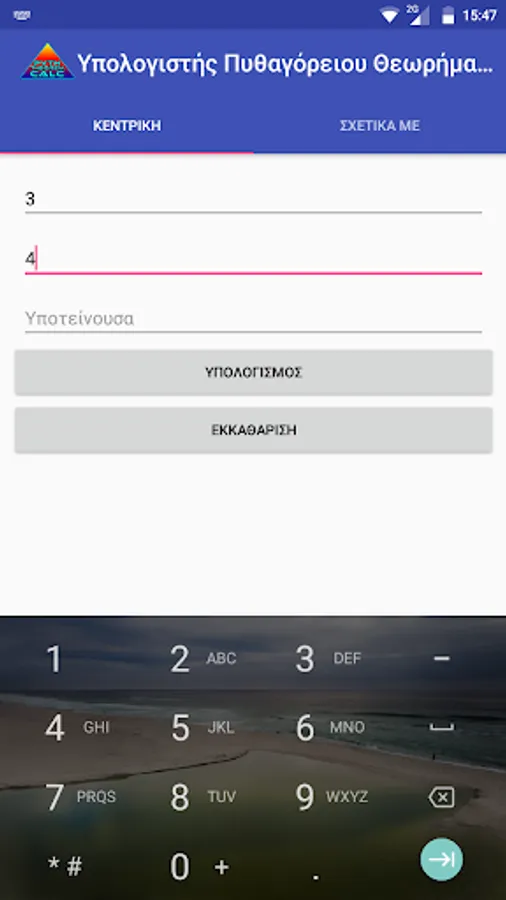 A simple application to calculate the hypotenuse knowing the two other sides or the calculation of one side knowing the hypotenuse and the other side !