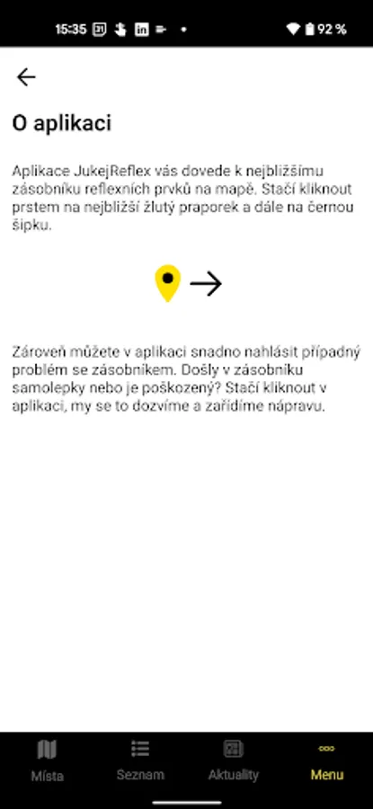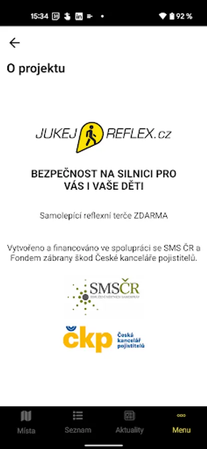 The application will take you to the nearest stack of reflective pedestrian stickers. It is able to navigate you even in the Off-line mode and contains a map of more than 3000 JukejReflex tanks in a total of 2000 municipalities throughout the Czech Republic. Reflective stickers are free of charge and we place the containers in places with an increased risk of a collision between a pedestrian and a moving vehicle. That is, on the outskirts of villages where sidewalks or public lighting, bus and train stops, etc. are missing. The stickers have a proven reflectivity of min. 200 - 400 m depending on conditions and do not damage clothing. They can be glued repeatedly and can withstand weather conditions in the temperature range from -30 to + 50 degrees. Celsius
