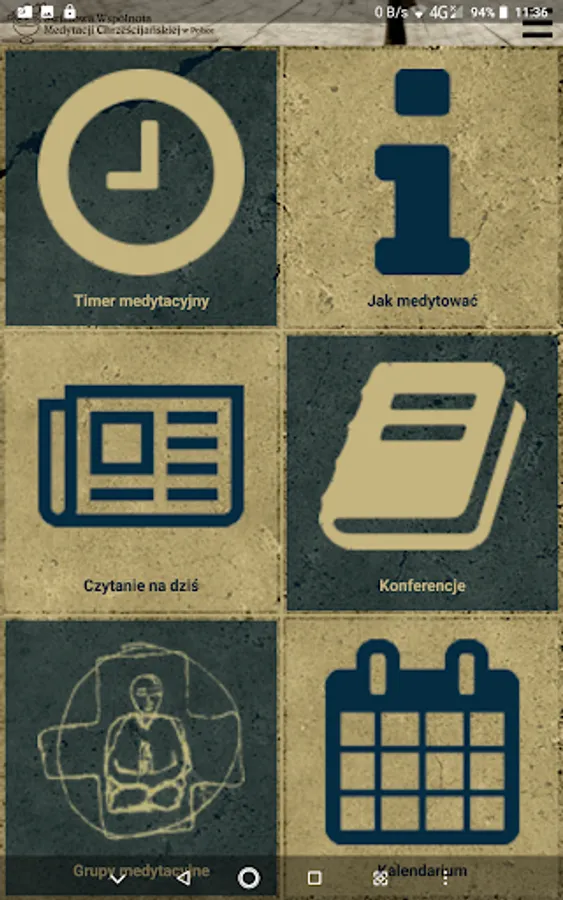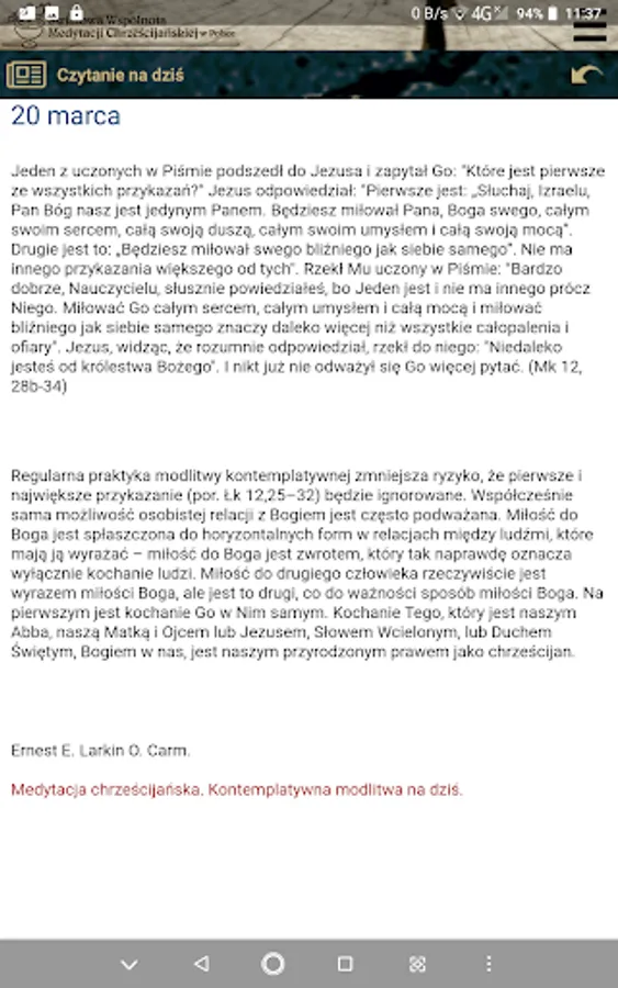 The application also includes the instructions "How to meditate?" in the tradition of teaching Christian meditation by Father John Maina OSB, biblical readings for a given day with a commentary, reading a spiritual text, calendar of events at WCCM Polska and contacts to meditation groups.