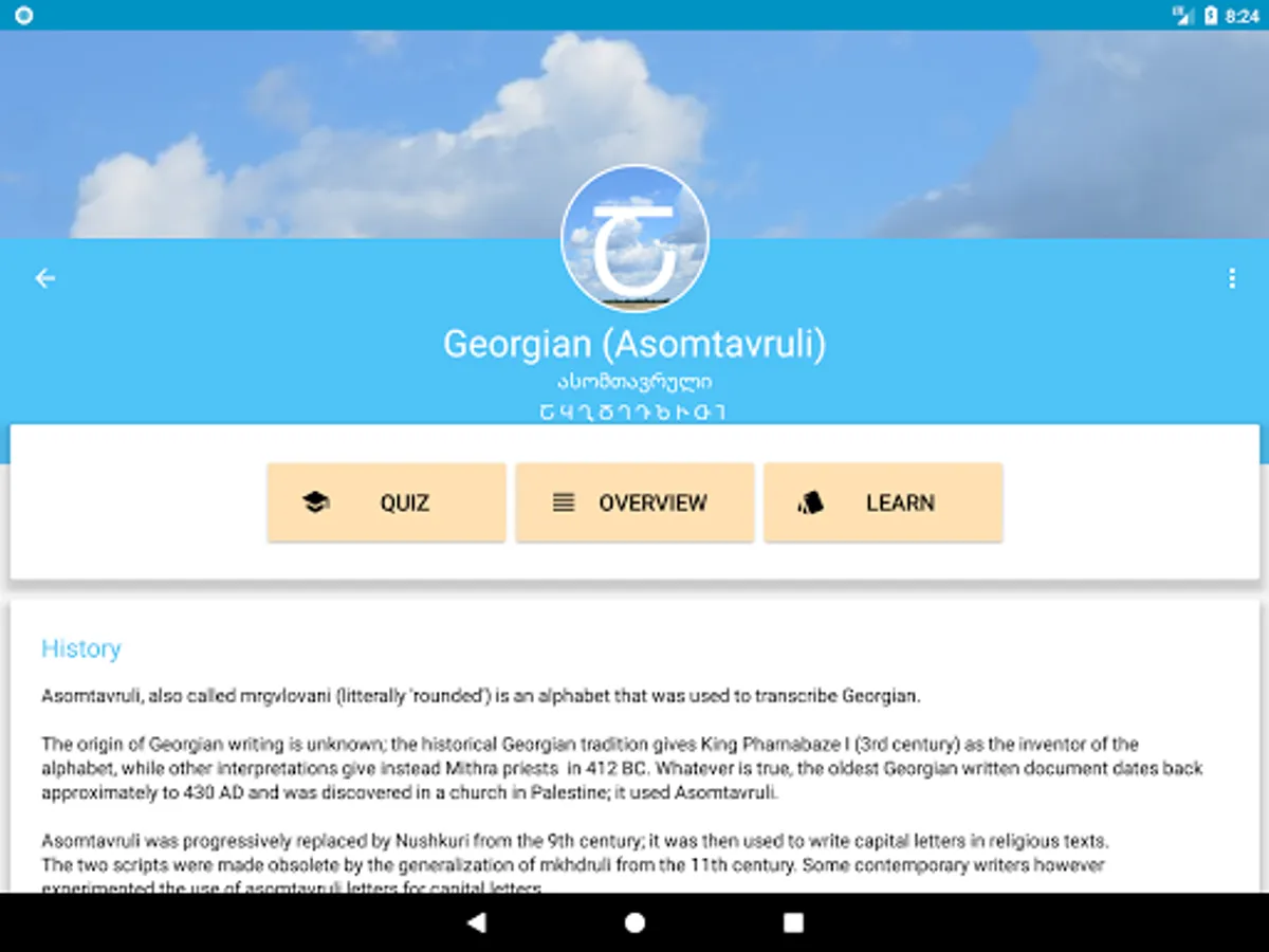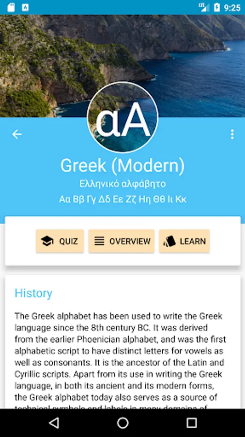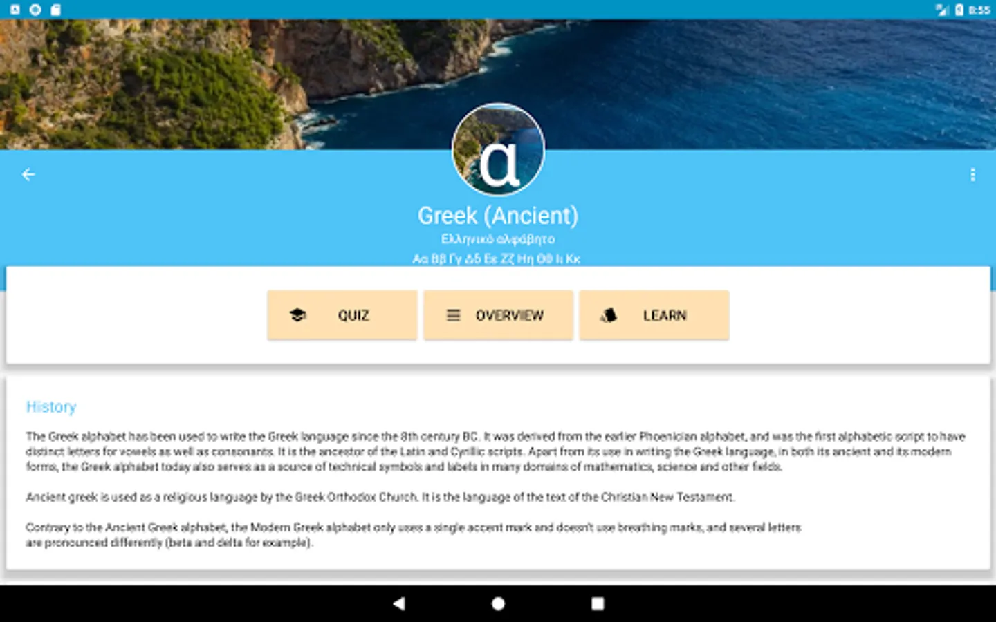 Once you have learned the alphabet, test your knowledge on tailored quizzes!