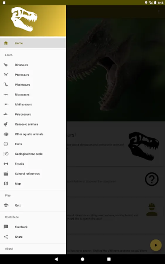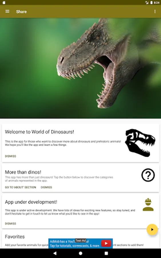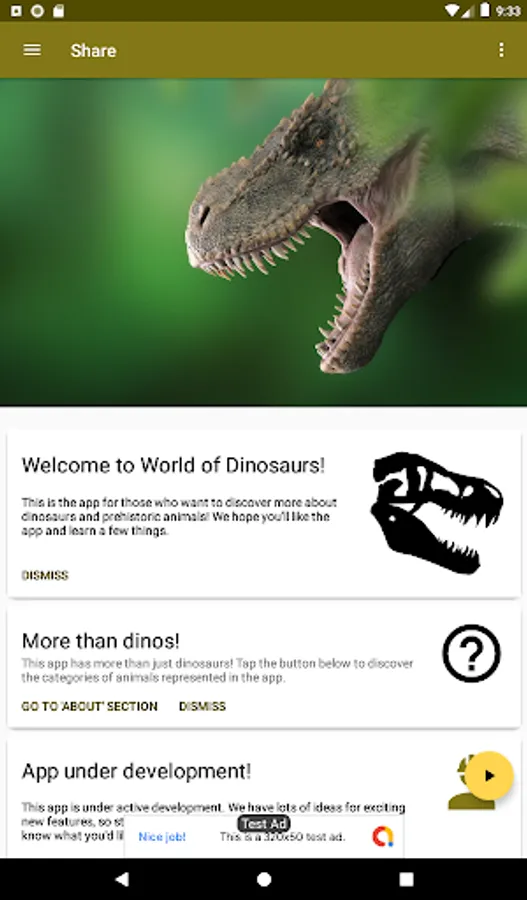 🦖 Introducing World of Dinosaurs, the ultimate Android application for all dinosaur enthusiasts out there! This app is packed with tons of information, fun quizzes, and other exciting features to help you explore and learn about the fascinating world of dinosaurs and prehistoric animals.