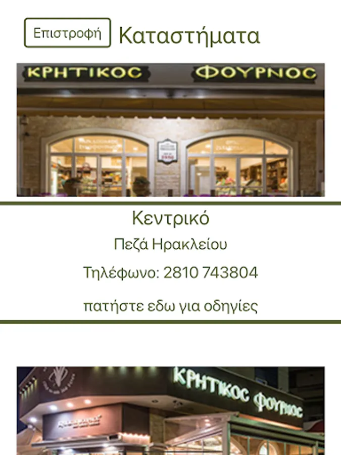 Today the Cretan Bakery Gefseis maintains seven stores, the central one in the village of Peza in Heraklion and the remaining six in the city of Heraklion.