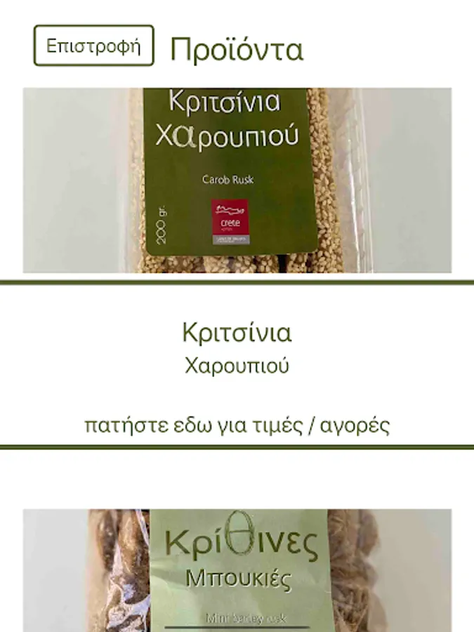 We love what we do and we prove it every day by working with every dignity, respect and zeal for our work. Our goal is to highlight in each case the local flavors and the clean and valuable raw materials of our island for this and we work with a small local mill of Mr. Stefanakis where we grind the unique fruits of the Cretan land.