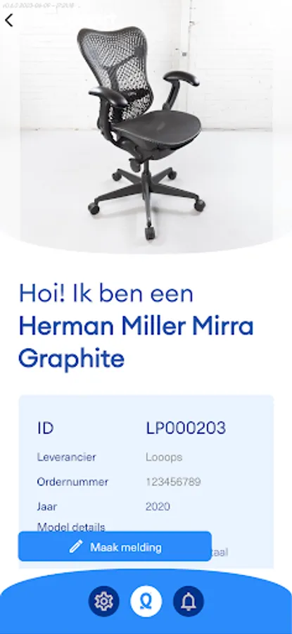 LooopsID is a system for managing and maintaining furniture in order to promote circularity. To make an inventory as effective as possible. Scan your furniture with your phone and receive detailed product information such as the type of furniture, manual, film about the product, materials used, etc. It is also possible to report a defect or damage with a simple scan of the LooopsID chip.