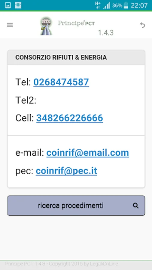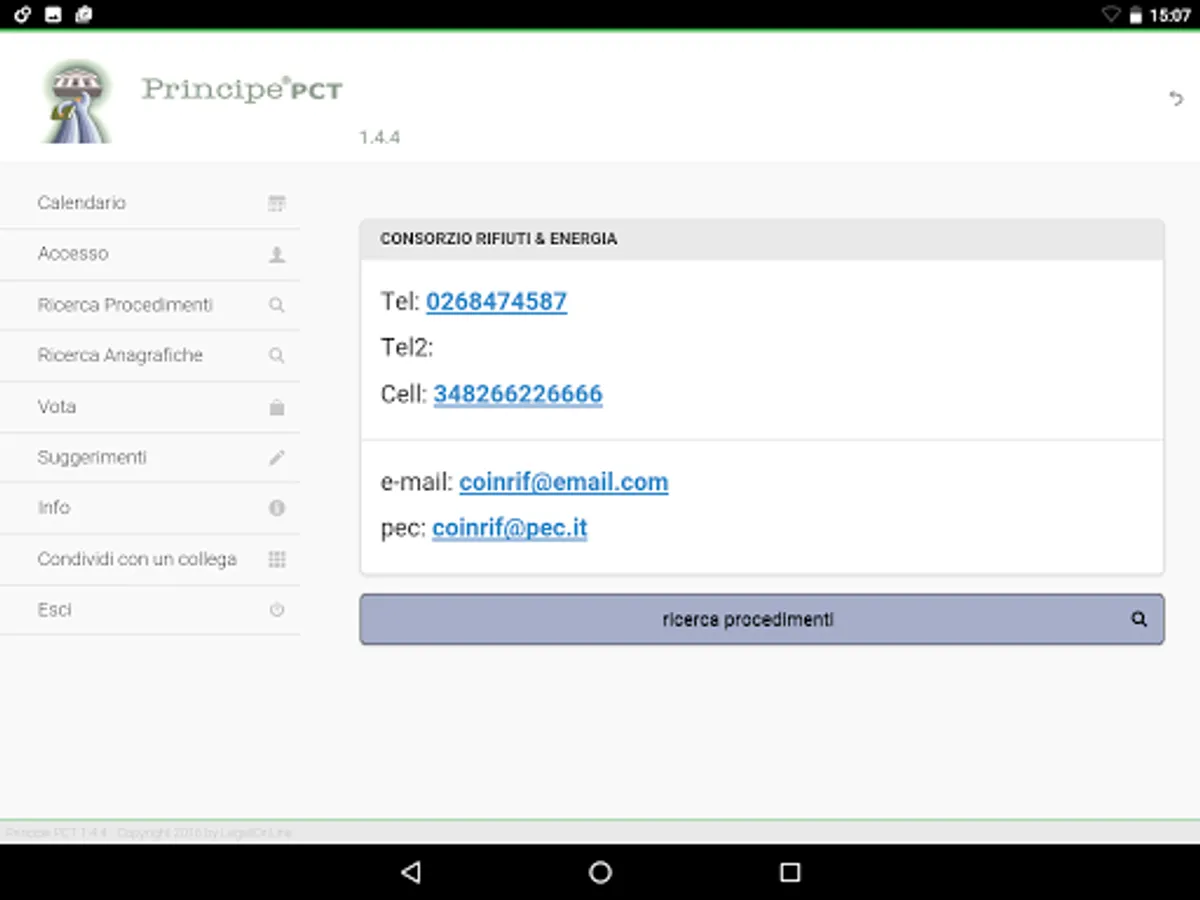 For more information see page http://www.legalionline.it/app