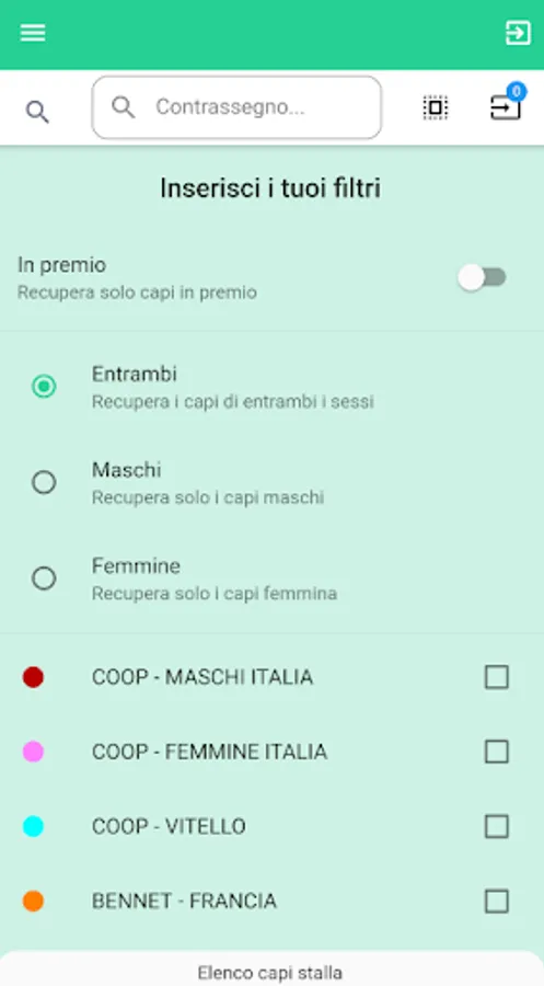 It is possible to filter the garments by label, gender, premium and by the various sales chains, respecting the corresponding criteria and parameters.