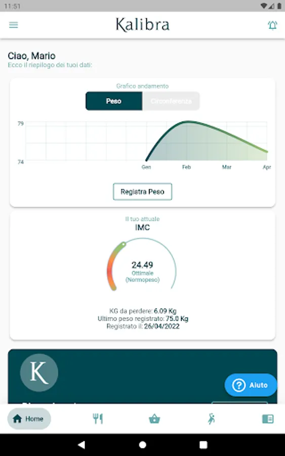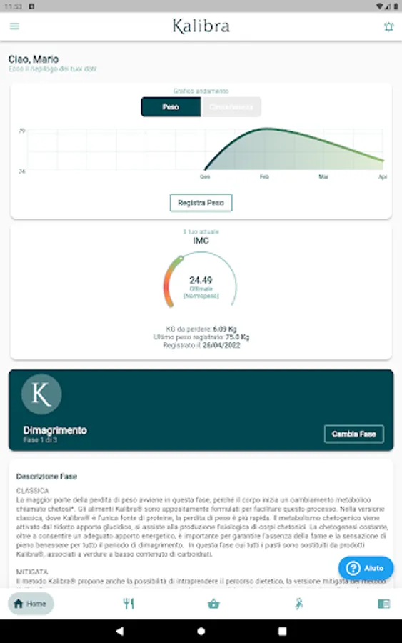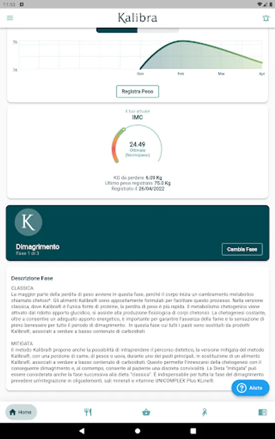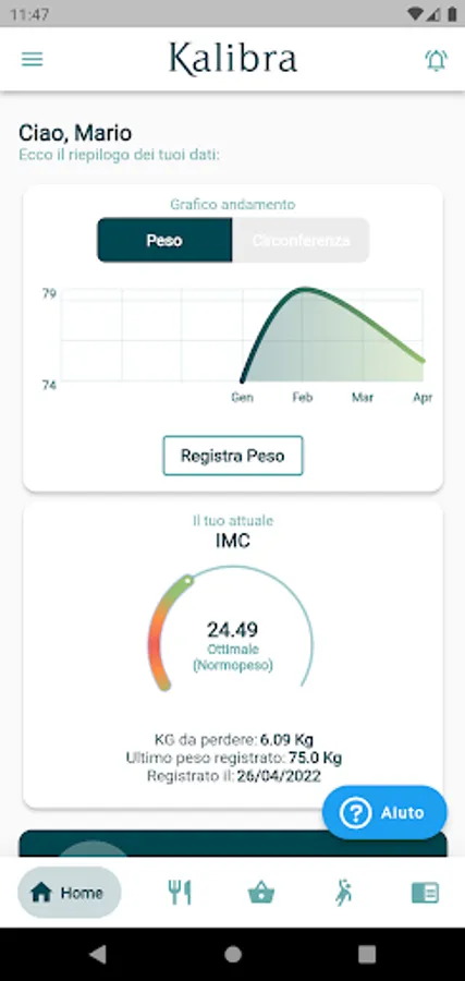 The most important part of a weight loss journey is reaching the goal and seeing the changes over time. For this reason, with the app you have the possibility to observe the evolution of your weight in a fast and intuitive way.