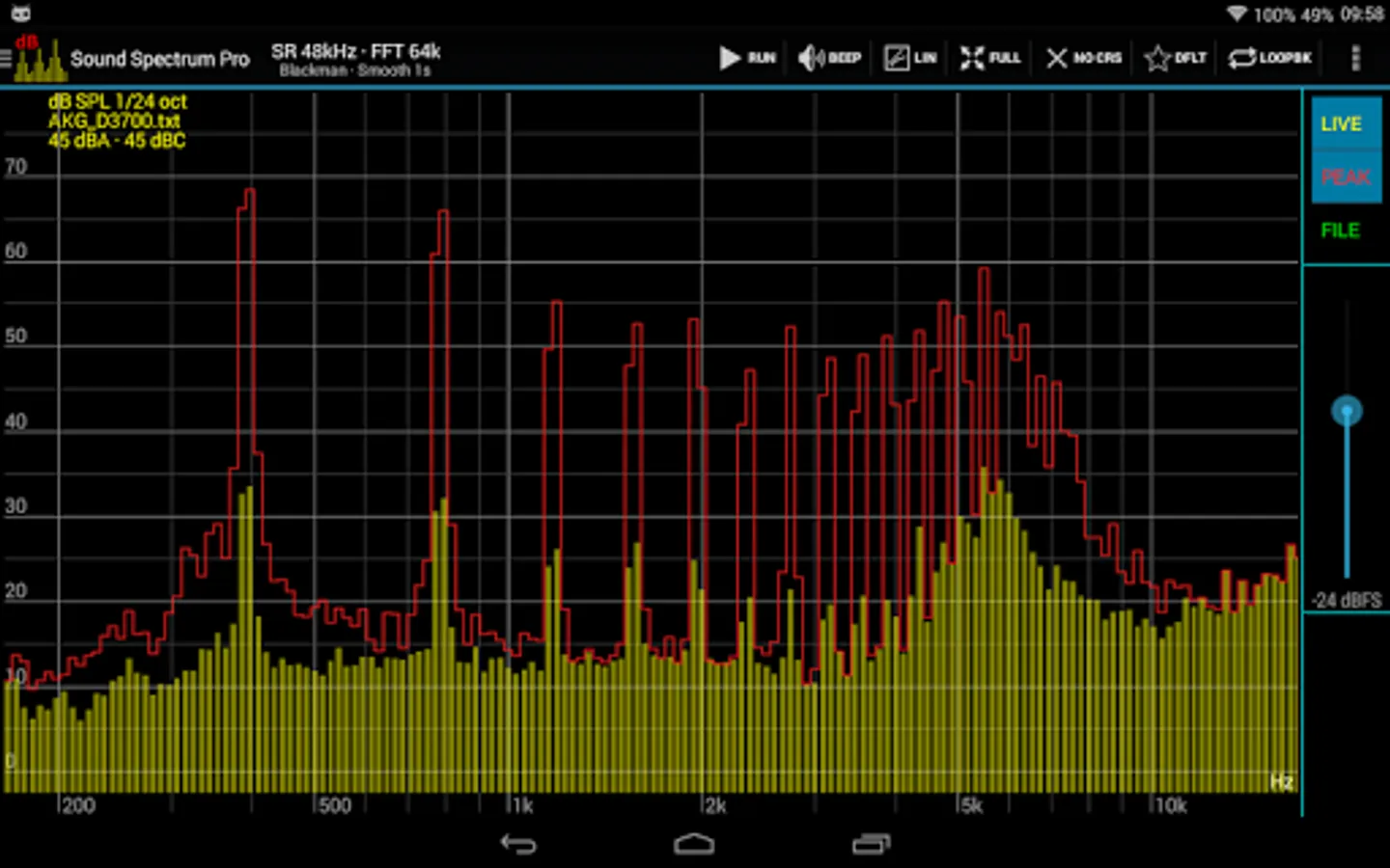 + File load/save and full calibration capability, for accurate SPL readings.