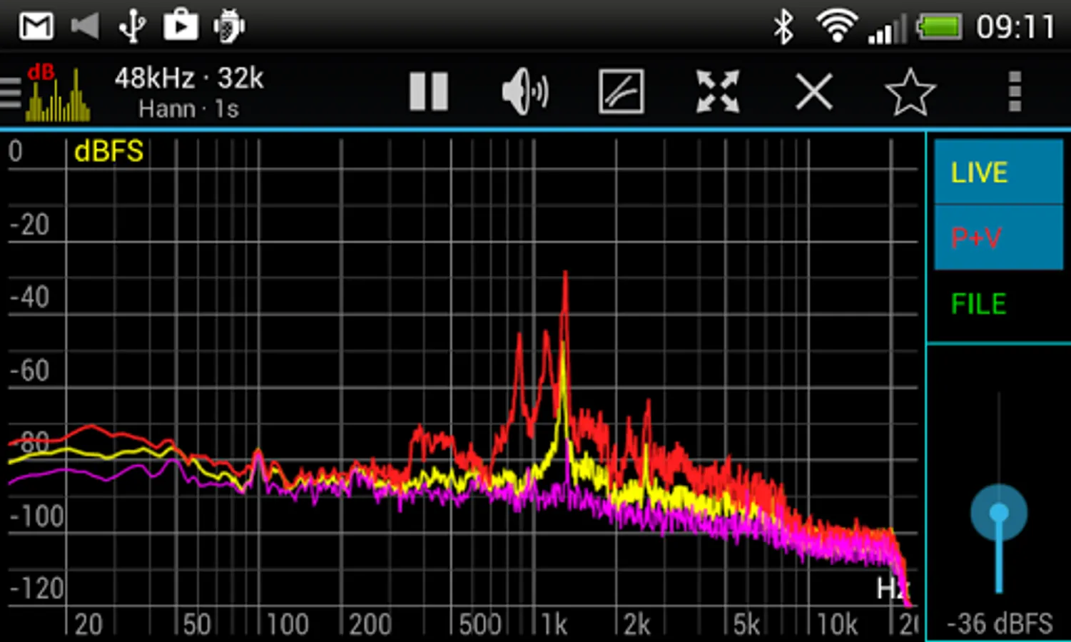 + FFT (amplitude) and RTA (octave, 1/3 octave, ... down to 1/24 octave).