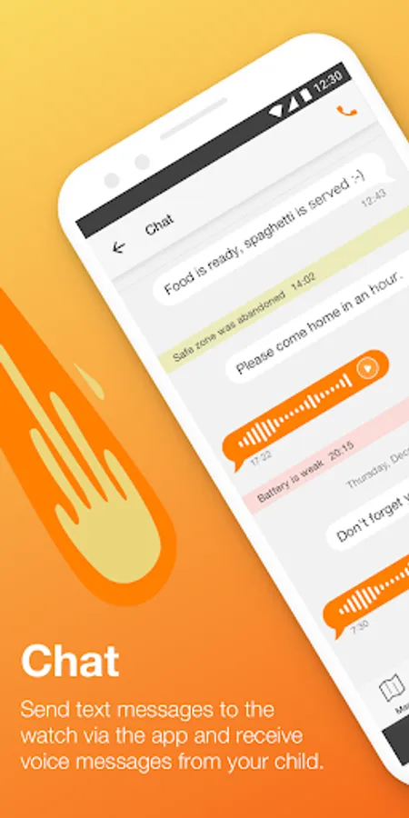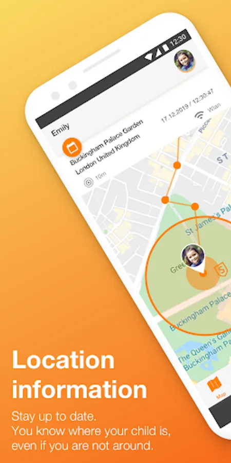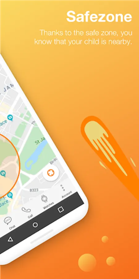 • Safezone: Set up up to eight areas via the app, upon which an alarm is triggered in the app; e.g. around the school or at home.
