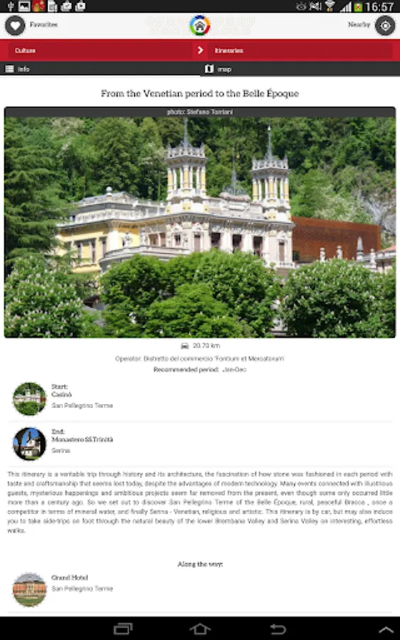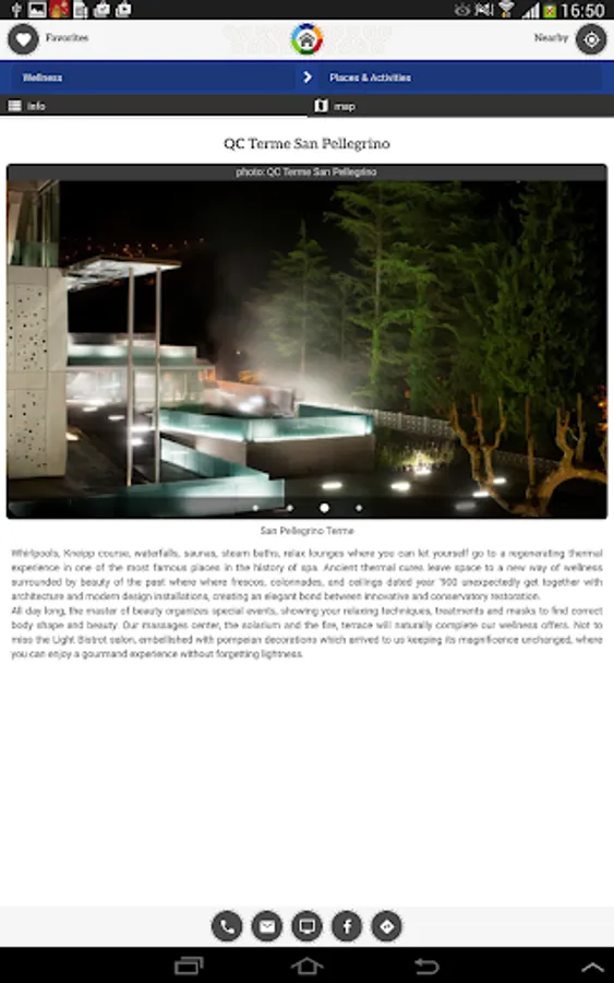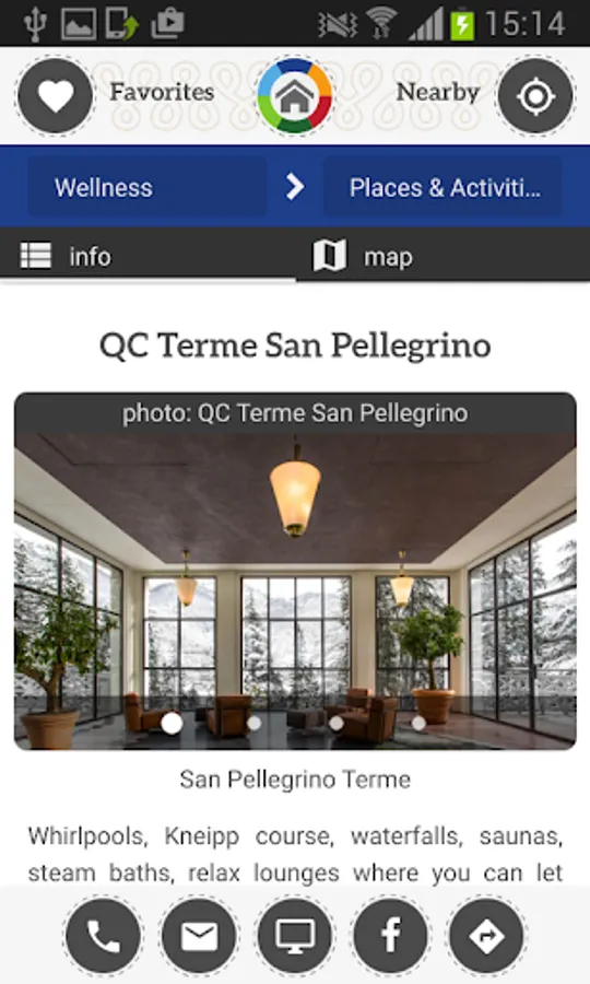 - Interact with the environment thanks to the rich place profiles which include a detailed description, pictures, opening times, telephone and email contacts, driving directions and much more