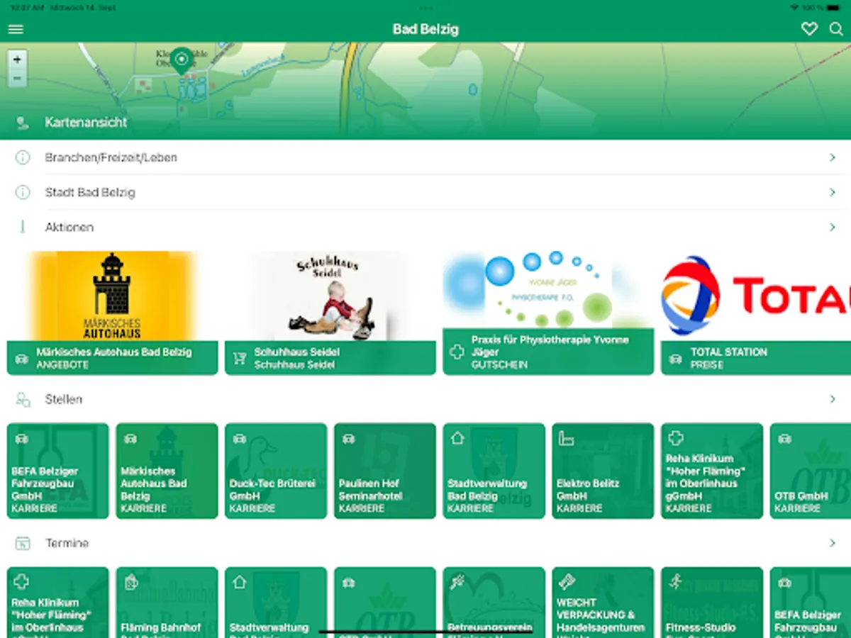 The constantly growing proportion of companies and institutions present themselves in a modern and contemporary way in order to present their offers, consisting of production, trade, services, crafts, etc., to guests and residents via this city app.