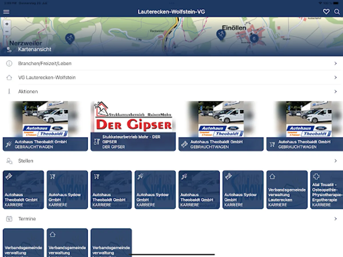As one of the first associated municipalities in the district of Kusel in Rhineland-Palatinate, we offer you a mobile all-inclusive medium that contains everything that our associated municipality has to offer. It is not just limited to the area of tourism and things worth seeing, but also offers extensive information on the subject of going out, staying overnight and shopping.