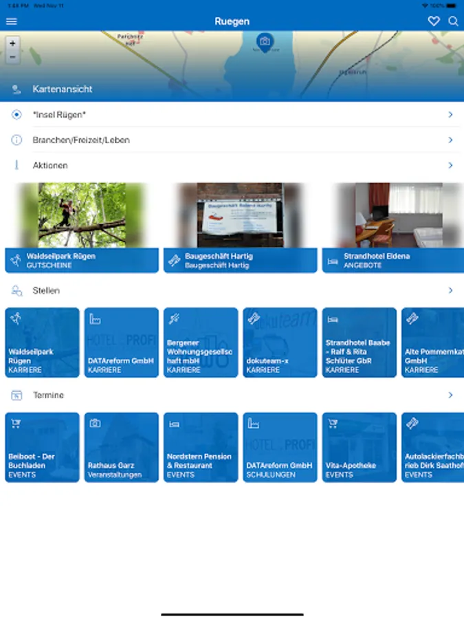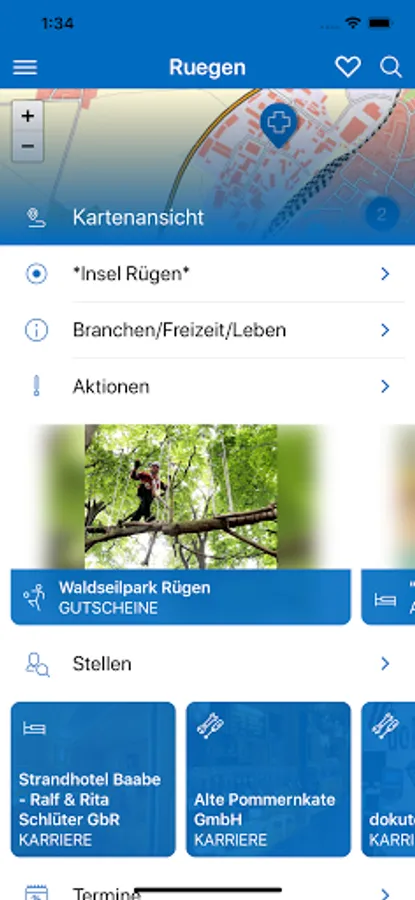 Rügen appIONE offers you a mobile all-inclusive medium that contains everything essential that the Baltic Sea island of Rügen has to offer. It is not limited to the area of tourism and attractions, but also offers extensive information on going out, staying overnight and shopping.
