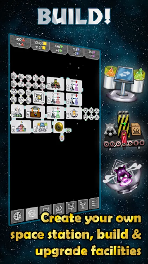 Using your crystal resources you may extend your workers' capabilities and also extend your own capability to place the workers by building and extending facilities at your base.
