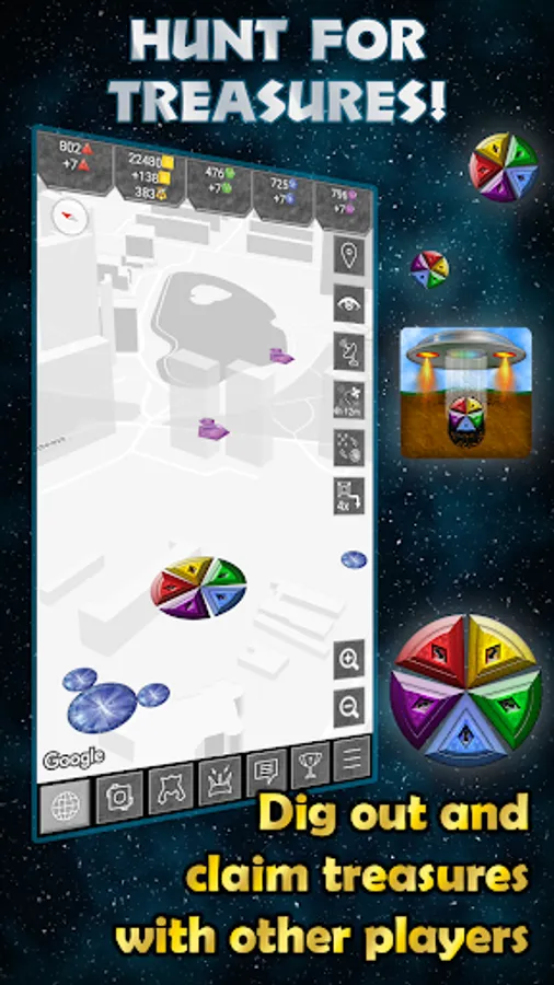 Color Planet is a massive-multi player online location based resources game (i.e. uses GPS or other location system on your device) but you may also place portals allowing you to play from a remote location.