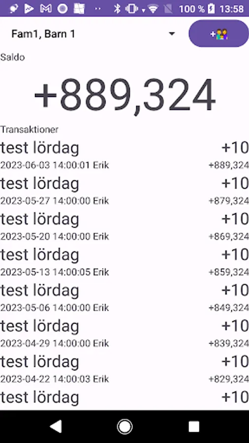 NOTE: This app does NOT handle money in banks etc. It just displays the transactions entered by your parents.