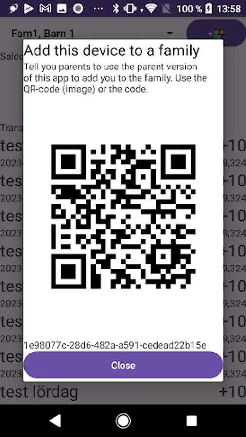 In this app you can only see your balance and transactions added by the parents in your family/families. It could be money handled by them for you or it could be something else, like screen time.