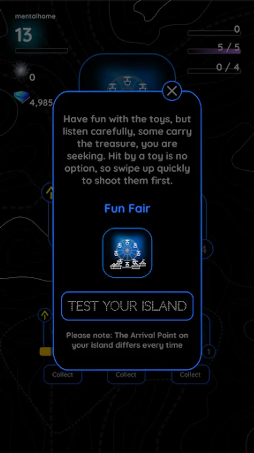 The FUN FAIR island is a happy place to be. You can shoot toys coming towards you. Some carry a treasure, some carry a bomb, that's the risk.