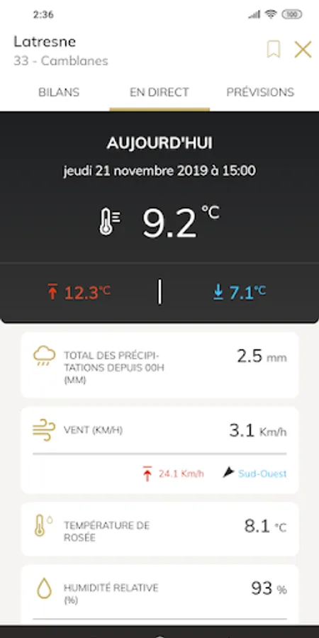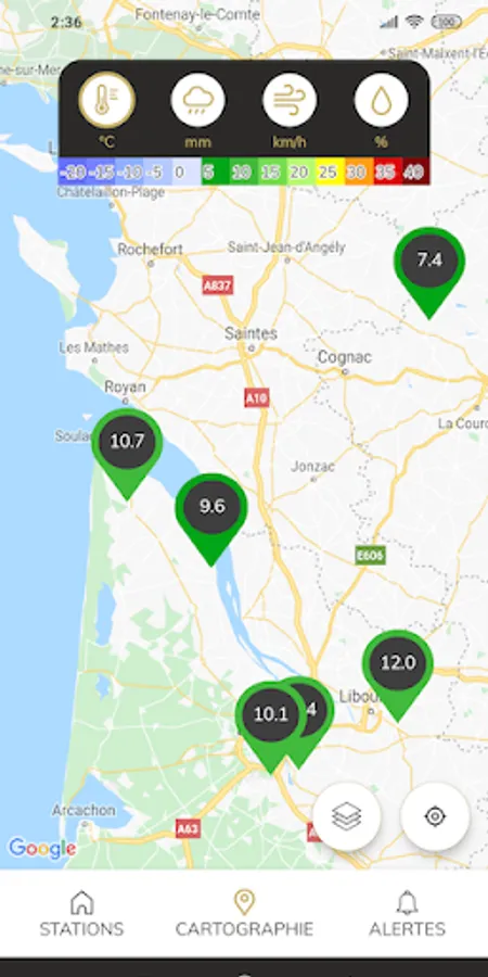 - access to live maps, rain, wind, temperature ...