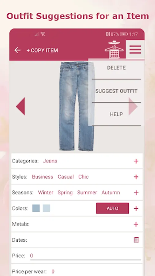 The "Copy Item" feature lets you create a duplicate of an existing Item copying its details without the image and price. This speeds up the process of adding new items to your digital wardrobe.