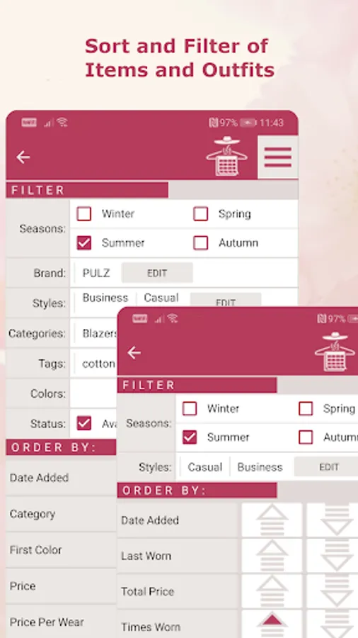 The tags feature allows you to add special data for each Item, which enables easy sort and filter of your wardrobe.