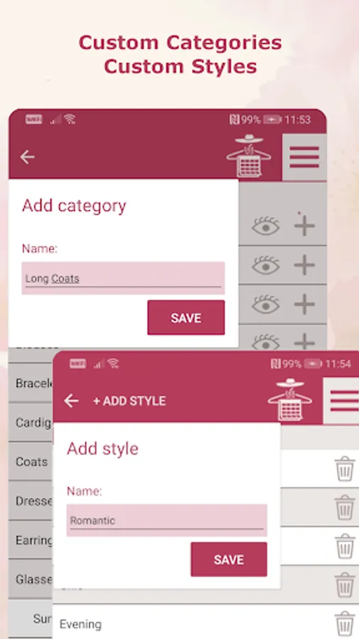 The backup functionality guarantees you will never lose your digital closet, even if you change your device.