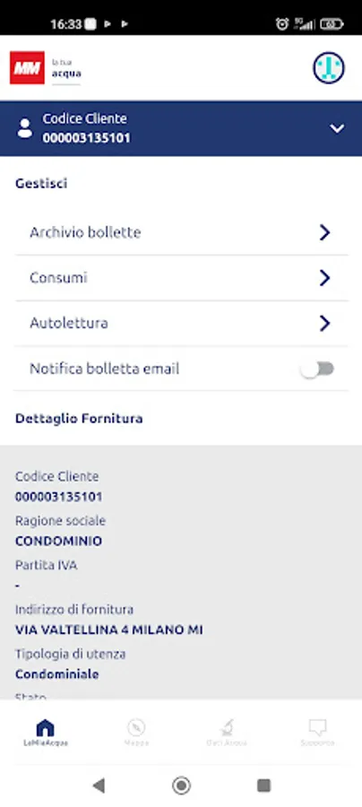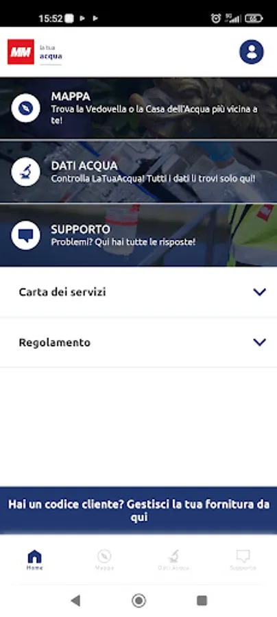 "Your Water" is the APP to manage your water supply in Milan in a simple and direct way and to receive information on the quality of the city's water and on the management of the Integrated Water Service by MM Spa.